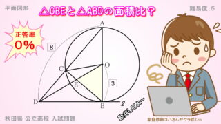 他県公立 数学 三角形の面積比 正答率0% 宮城県の近隣、秋田県の公立高校の入試問題。2つの三角形の面積比を求める過去問。答えに直結する相似な図形が見当たらないので補助線を1本引いて相似な三角形を作り出します。 2023.05.12 他県公立 数学過去問解説