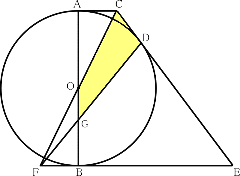 線分DFと線分ABとの交点をGとするとき、四角形OGDCの面積を求めよ。