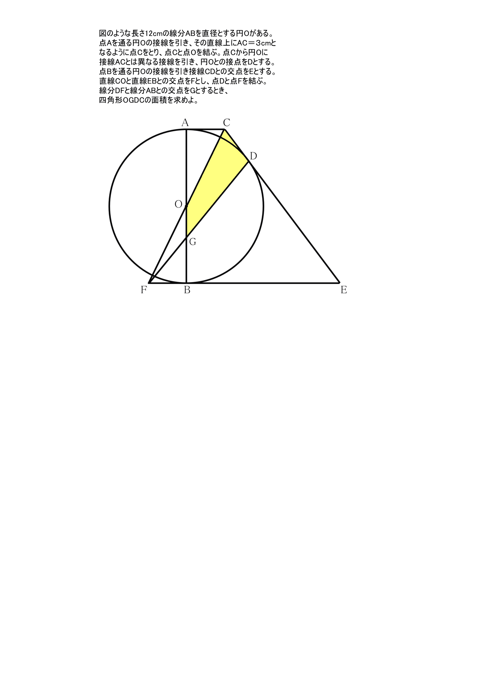 線分DFと線分ABとの交点をGとするとき、四角形OGDCの面積を求めよ。