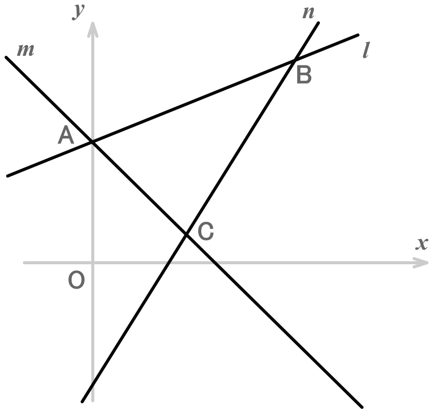 3本の直線に囲まれた三角形の面積を求める問題。今回は2種の方法で解いてみます。